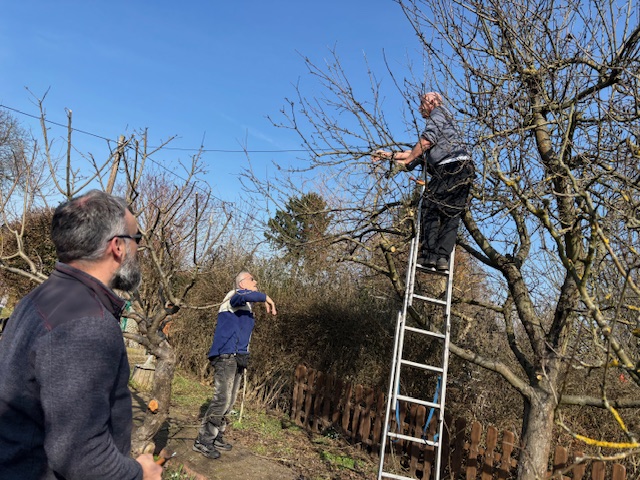 Ein sonniger Tag, eine Gruppe neugieriger Gartenfreunde – und mittendrin Konrad und Rainer mit Säge und Astschere und Ulrike, die weitere nützliche Hinweise den Interessierten gab. So begann die Demonstration zum Obstbaumschnitt der Gartenfreunde Britz. Ein Apfelbaum bekam einen neuen „Haarschnitt“ … Konrad, der offensichtlich schon mehr Obstbäume gesehen hat als die meisten von uns…
