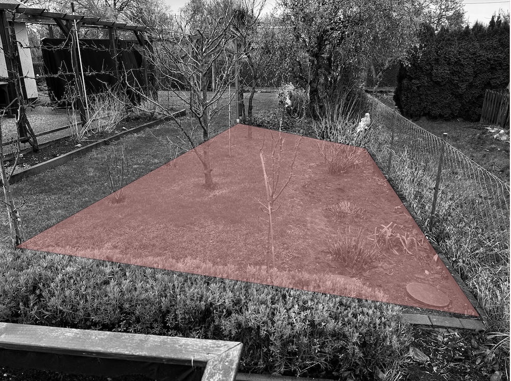 Der eventuelle Verlauf der Grenze zwischen Blumenwiese und Rasen wurde farblich markiert.