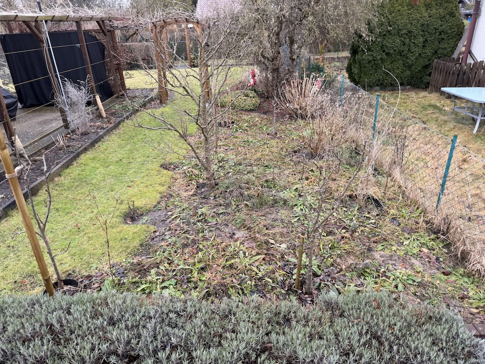 Die Hortensien wurden umgesetzt und die Fläche wird die nächsten 2 -3 Wochen brach liegen. Anschließend werden eventuelle Wildkräuter entfernt, bevor der Boden mit Sand „abgemagert“ wird.